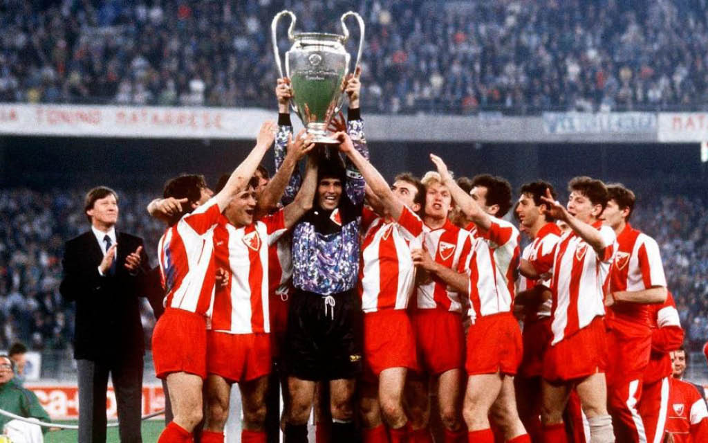 La final de 1991 se jugaba en el Estadio San Nicosa de Bari, los dos equipos buscaban lograr su primera copa de Europa. Los dos equipos estaban ansiosos por tocar la gloria. Por culpa de la poca experiencia de estos dos equipos, el partido fue bastante aburrido, ya que ninguno de los dos jugaban el fútbol que les distinguía del resto. Llegaron a los penaltis, donde se mostraron infalibles, hasta que en el quinto penalti, que fue convertido por Pancev, dando al Estrella Roja, su primera Copa de Europa. El equipo belgradense, parecía ser el favorito para hacerse con los siguientes trofeos, pero la guerra estalló en Belgrado, y el equipo se desquebrajo completamente.