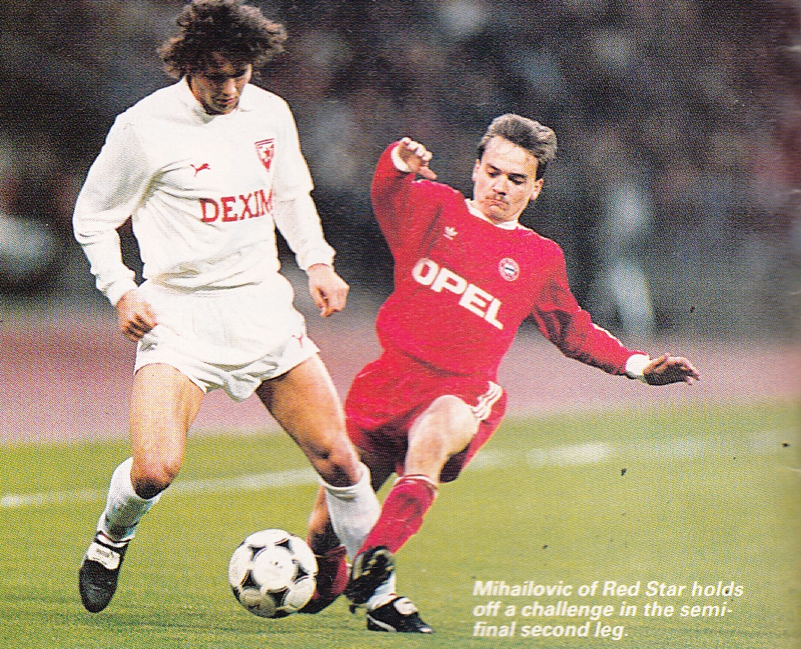 Por otro lado, un sorprendente Estrella Roja, con jugadores como Prosinecki o Savicevic, lideraban una generación excepcional. Se encontraban con el Bayern de Múnich, el partido de ida se jugó en Alemania, aunque el Estrella Roja consiguió ganar por 1-2. En Belgrado, tras un partido de infarto, parecía que el partido se iría a la prorroga, pero en el minuto 90 un centro fue desviado por Augenthaler se coló milagrosamente en la portería germana. Ese gol clasificó a la final al Estrella Roja.